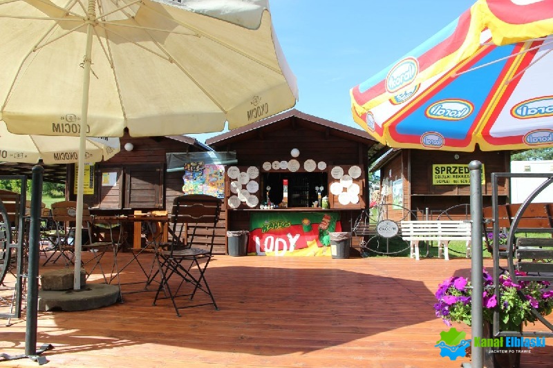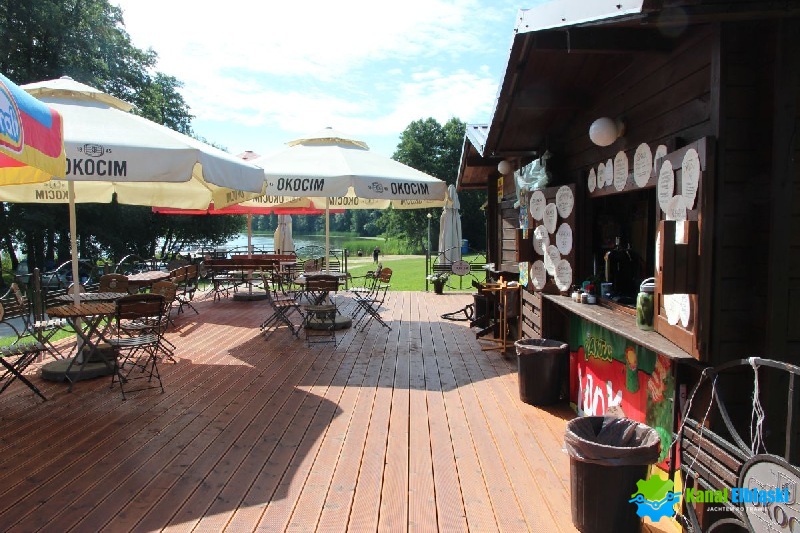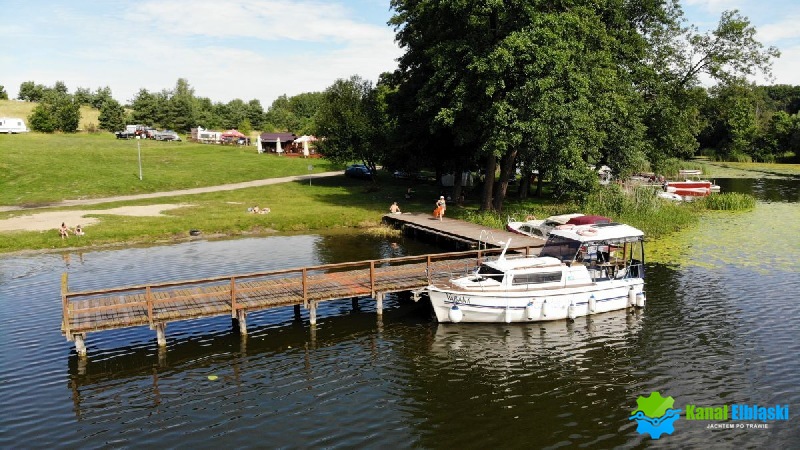 Przy kąpielisku zlikalizowany jest pomost cumowniczy w kształcie litery L, od południowej zabezpieczony barierkami.