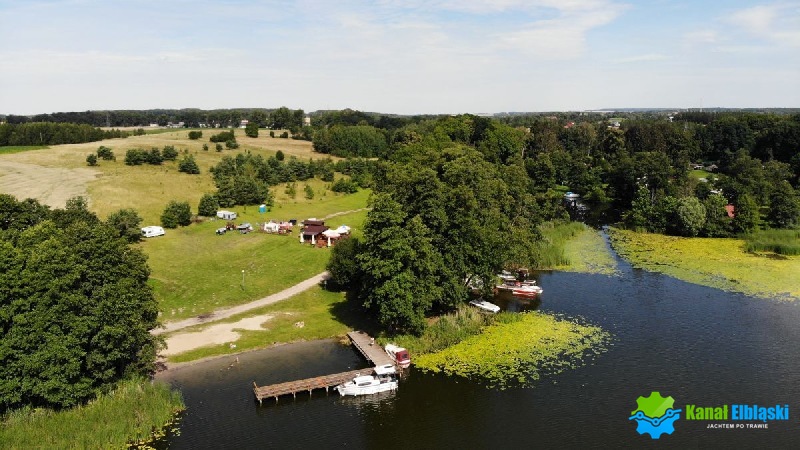 Pole Namiotowe Dzika Gęś zlokalizowane jest w północnej części jeziora Ruda Woda, tuż przy wyjściu z kanału, na zachodnim brzegu.