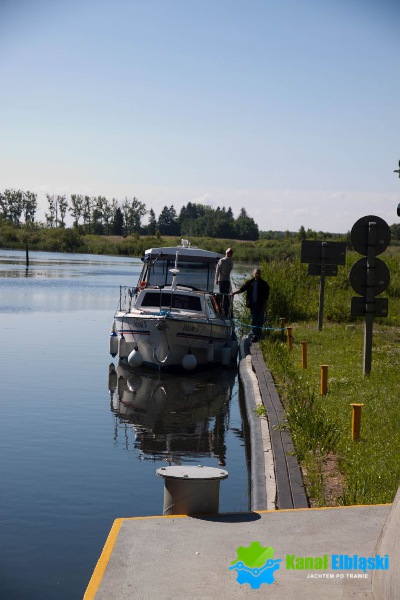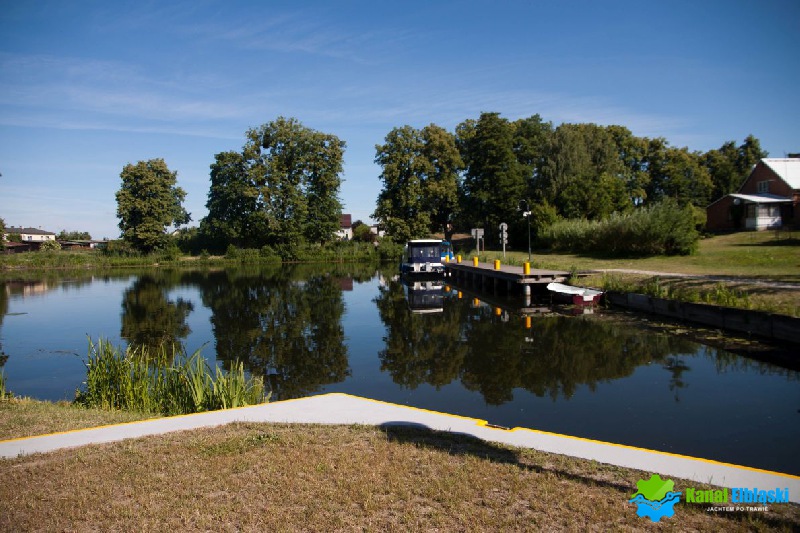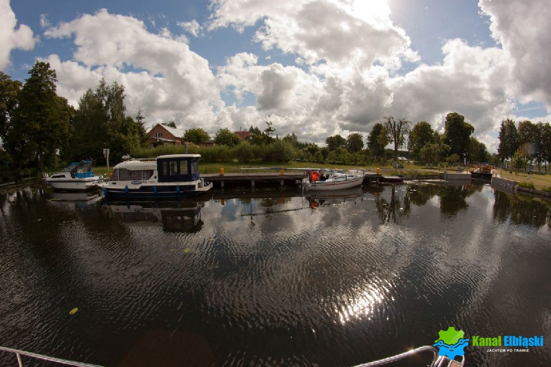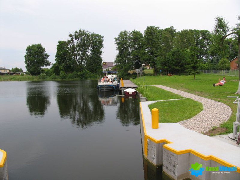 Płynąć od strony Elbląga, w awanporcie przed śluzą Miłomłyn, po lewej stronie znajduje się pomost cumowniczy przy śluzie w Miłomłynie. Cumujemy burtą do pomostu cumowniczego, w oczekiwaniu na śluzowanie lub dłuższy postój. Nie zaleca się cumowania w tym miejscu na noc, lepiej skorzystać z oferty przystani zlokalizowanej na wyspie w Miłomłynie.