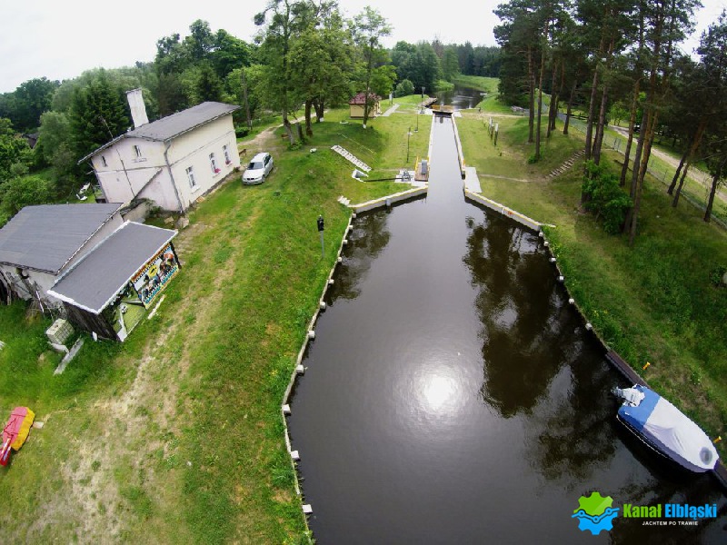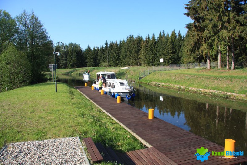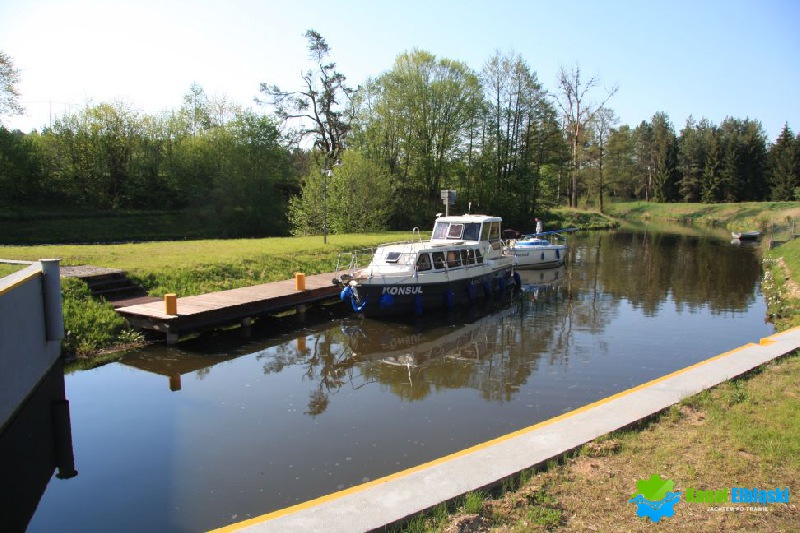 Płynąc od strony Ostródy, po prawej stronie przed śluzą Zielona znajduje się pomost cumowniczy przy śluzie Zielona, przeznaczony do postoju jednostek oczekujących na śluzowanie. Cumujemy do niego longisde, zgodnie z dobrymi praktykami żeglarskimi. Zaraz za śluzą po lewej stronie są miejsca gdzie można przystanąć na dłużej. Cumujemy burtą do umocnień brzegowych, z pobliskiego ośrodka można pobrać prąd, skorzystać z natrysków.